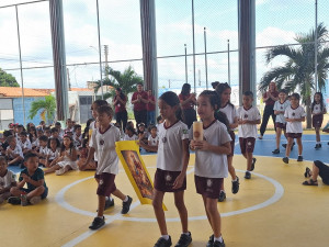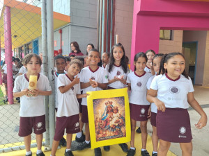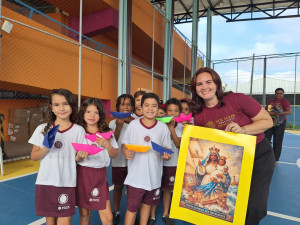A primeira acolhida do ano de 2026 no Prédio B da Escola Padre Arrupe, reuniu a todos para um momento significativo. Na segunda, 02 de fevereiro, os educandos do 2º ano do Ensino Fundamental conduziram uma acolhida especial para toda a instituição Inspirados pela celebração da data de Nossa Senhora dos Navegantes e Nossa Senhora das Candeias, que recorda a relação da fé e da cultura, apresentando imagens, barcos e velas em uma narrativa simbólica ligada aos diferentes nomes de Maria, que nos educam para seguir o Seu filho, Jesus.