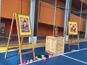 Os barcos representaram Maria como aquela que guia, protege e conduz seus filhos em meio às travessias da vida, assim como Nossa Senhora dos Navegantes acompanha aqueles que enfrentam os mares com fé e esperança. Já as velas simbolizaram que a vida de Maria foi iluminada por Jesus, recordando Nossa Senhora das Candeias, que ensina Jesus como a Luz do mundo.